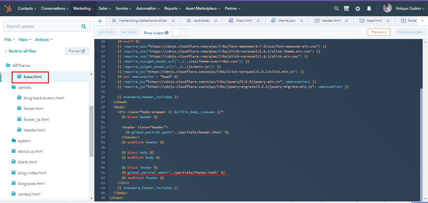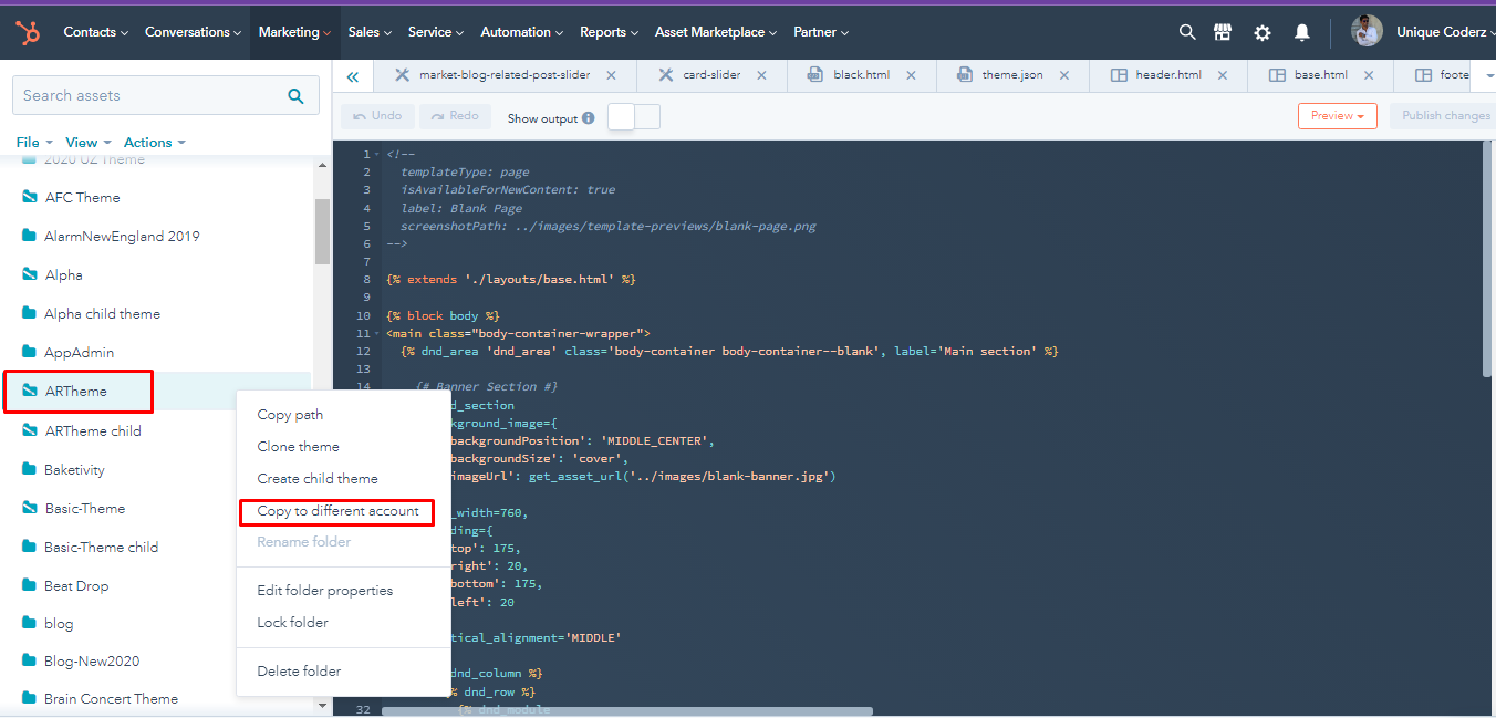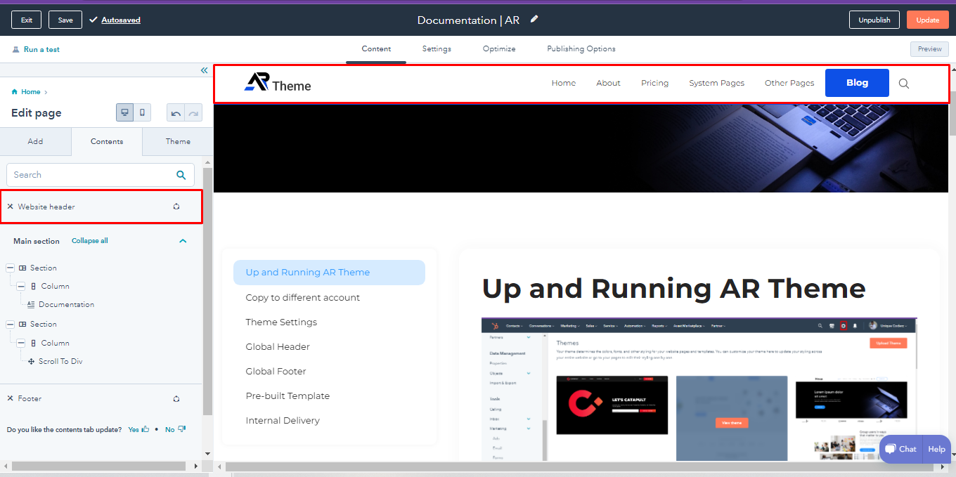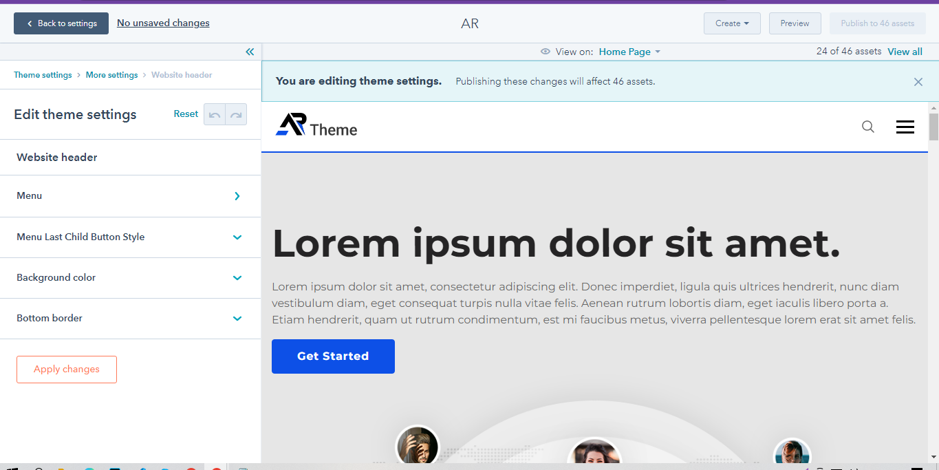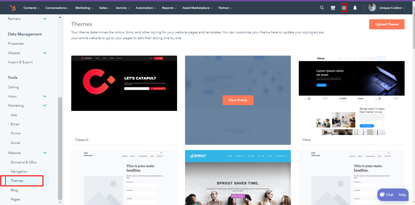 In your hubspot account click on setting icon (Top right) > left side navigation scroll bottom Show Tools click on Website > Themes > Select your theme