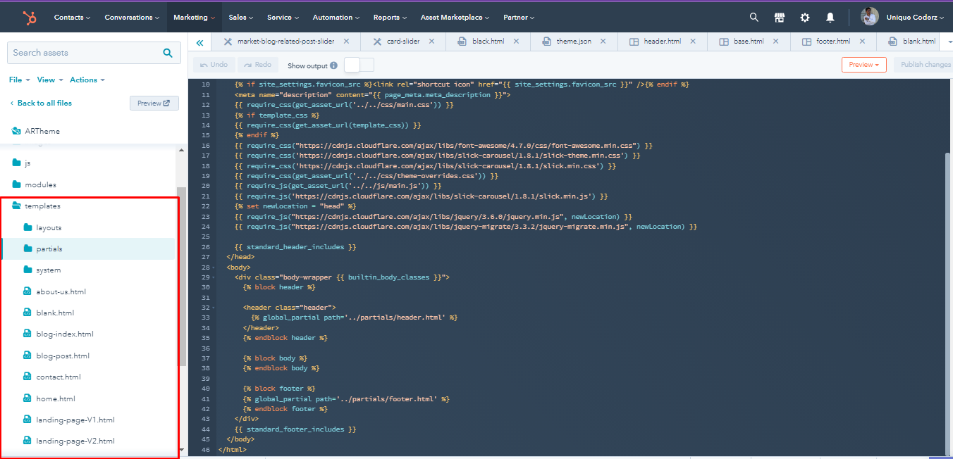 - On the Templates tab, you can view or change the templates applied to your blog posts and blog listing page