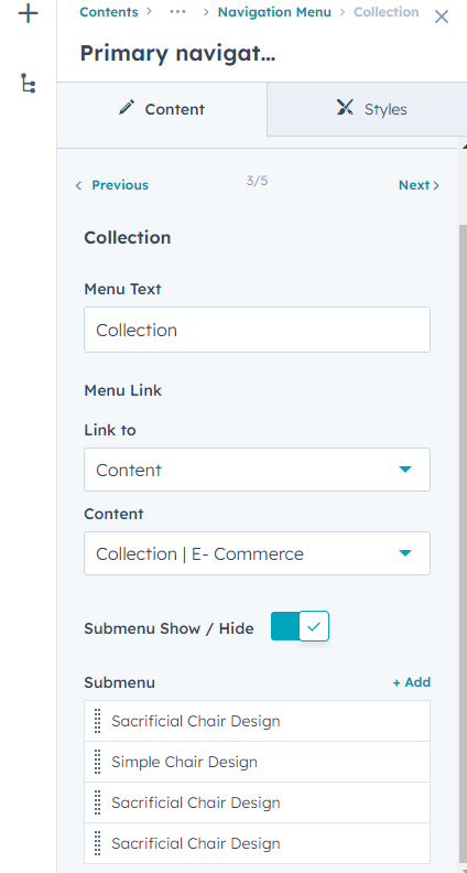 - Child Menu Color