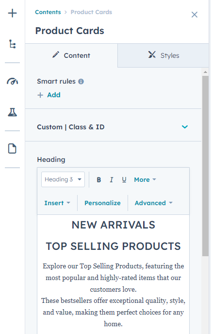 - Product Heading