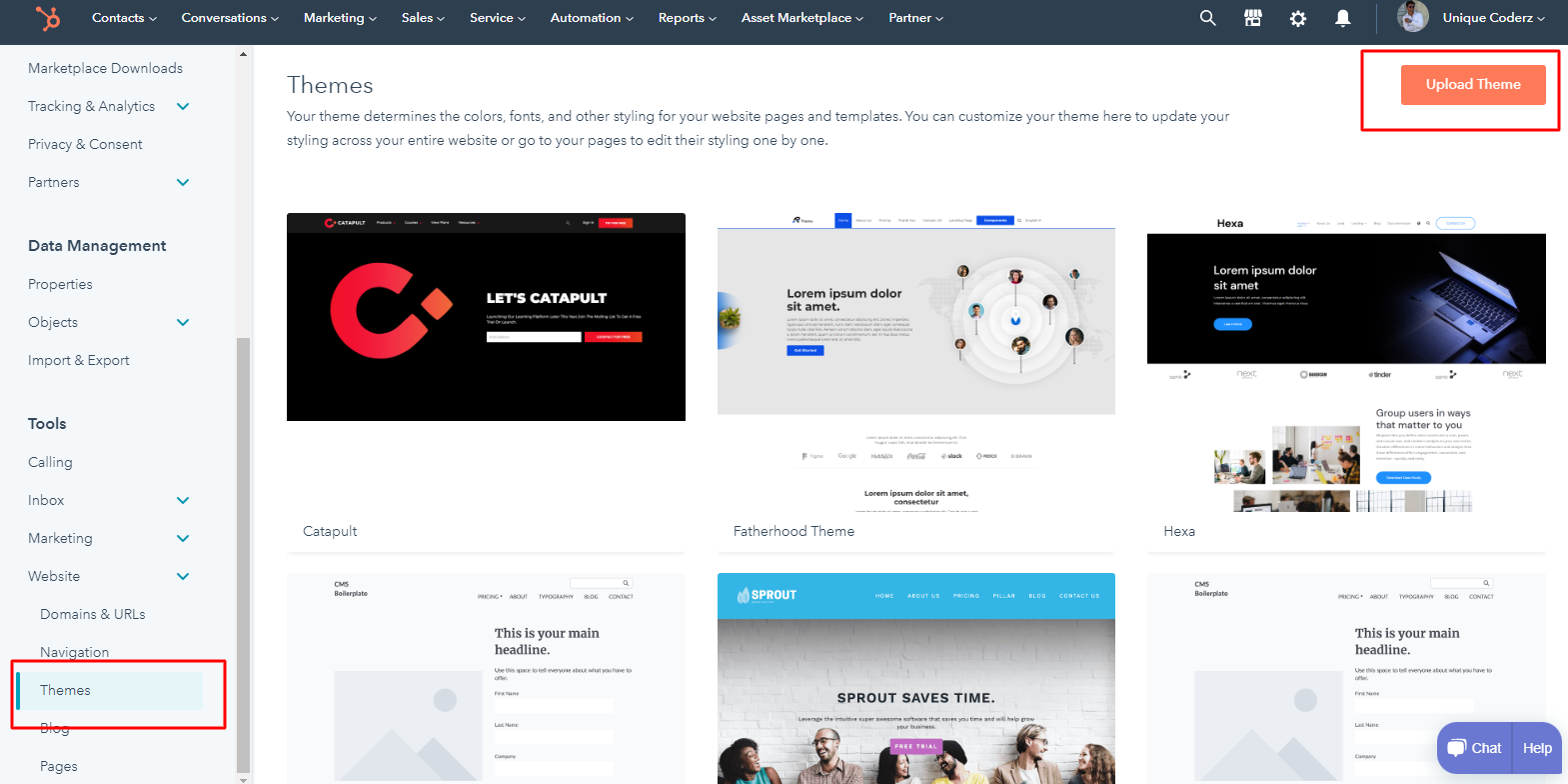 In your hubspot account click on setting icon (Top right) > left side navigation scroll bottom Show Tools click on Website > Themes > Select your theme