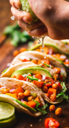 Soft corn tortillas filled with seasoned beef, topped with fresh salsa, lettuce, and cheese.